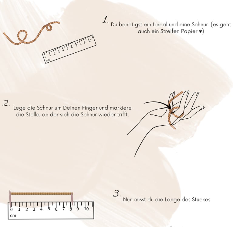Dann miss den Umfang von deinem Finger und bestimme somit die Ringgröße.
