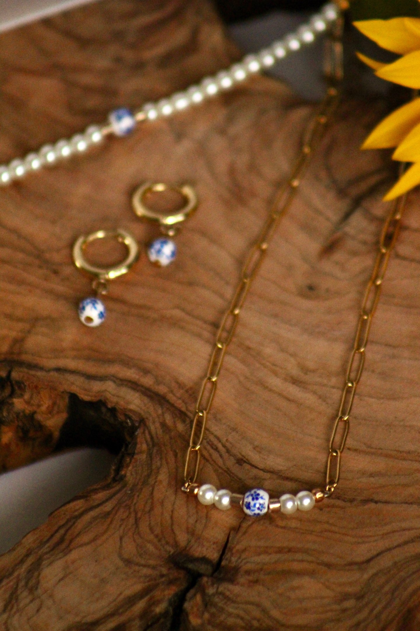 Handgemachter Schmuck nach Kundenwunsch, gefertigt aus hochwertigen Materialien wie Perlen und Gold.